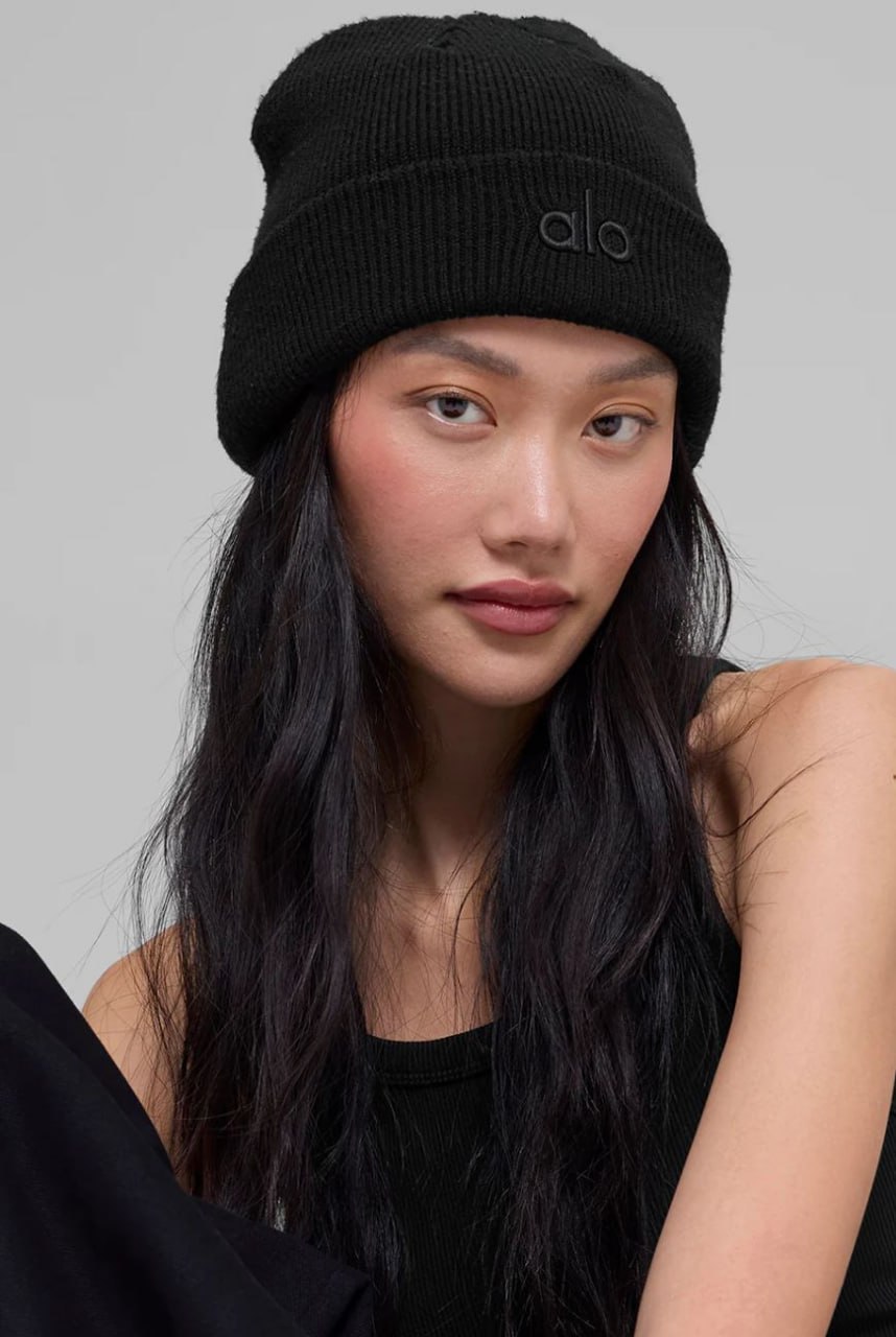 Alo Yoga kadin bere Siyah Nakisli Logo Detayli Siyah