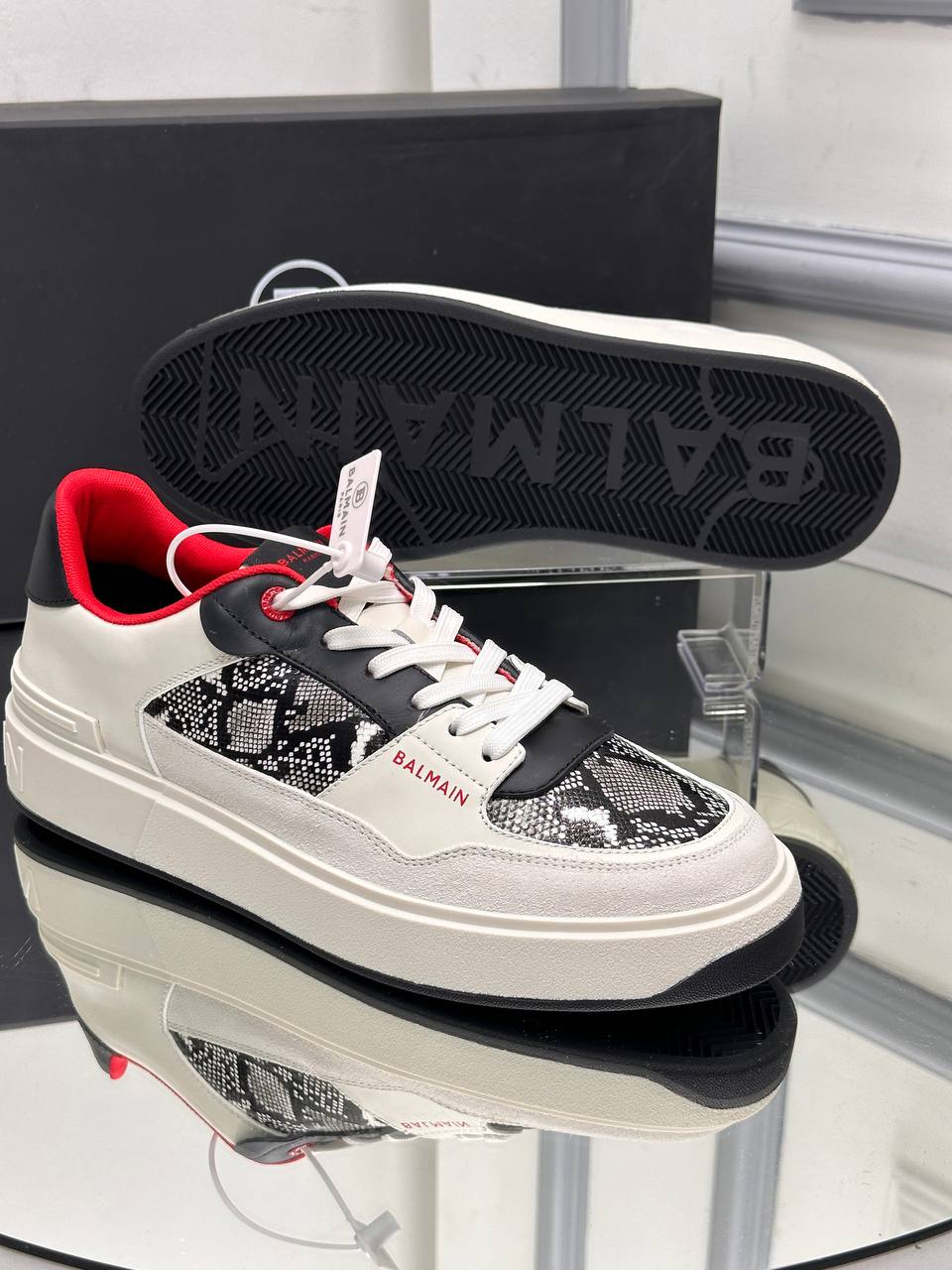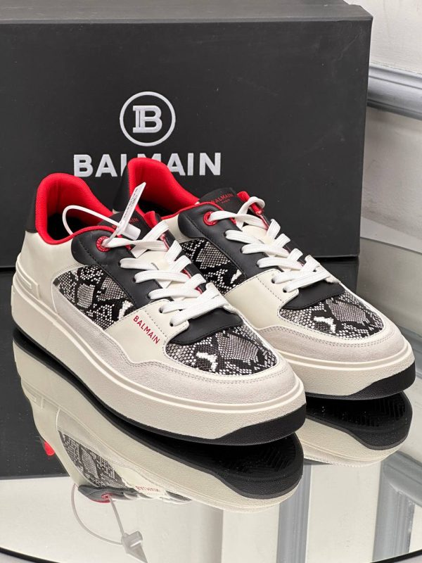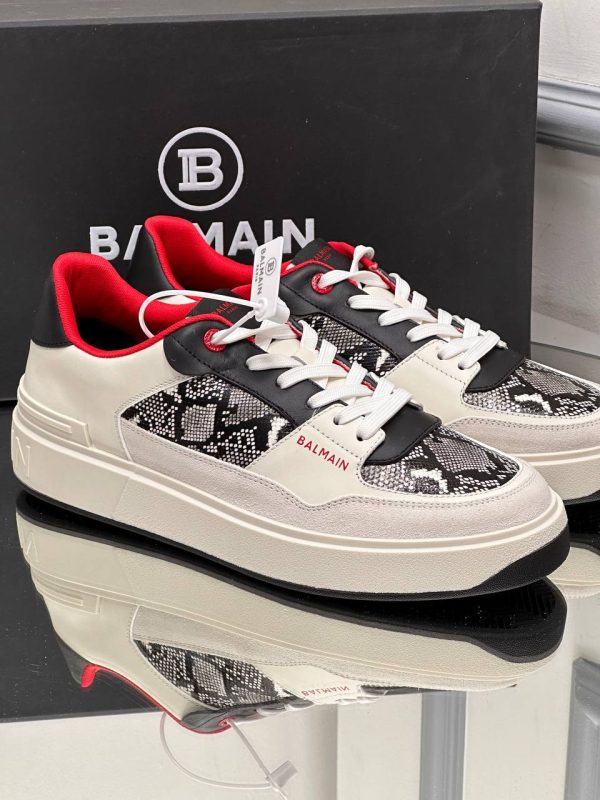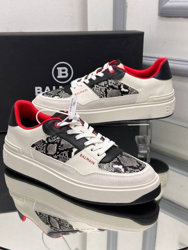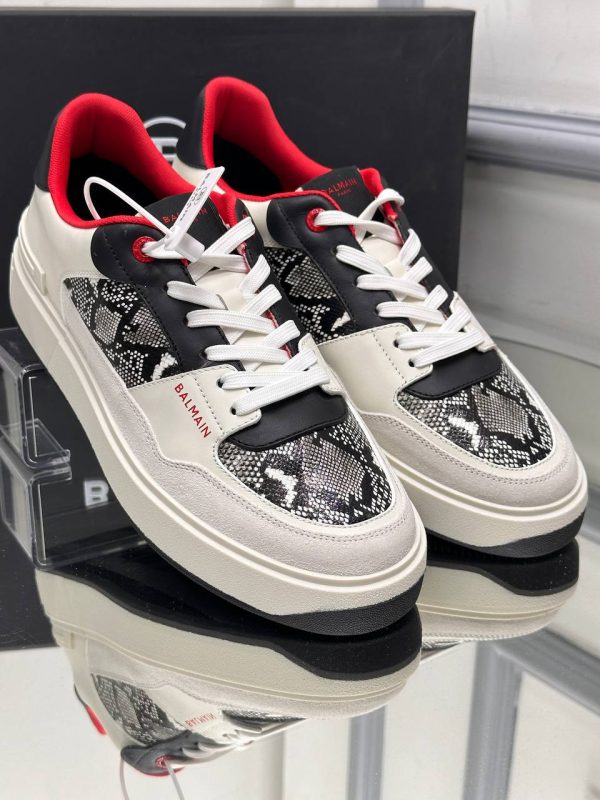 Balmain erkek ayakkabi Piton Deri Detayli Sneaker Yeni Sezon Beyaz