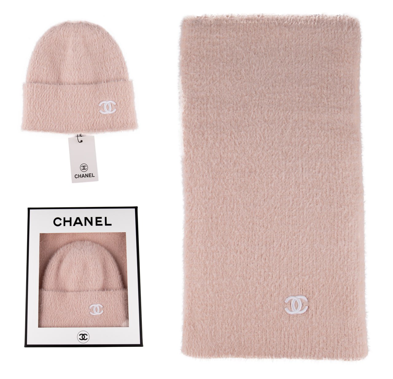 Chanel kadin atki bere takimi Logo Detayli Yeni Sezon Pembe adet