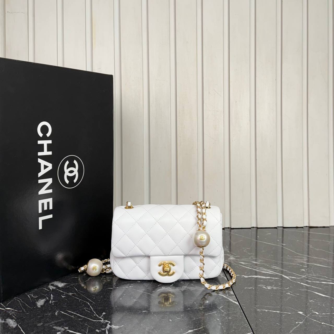 Chanel Kadin canta Flap Inci Aksesuarli Kucuk Boy Yeni Sezon Beyaz