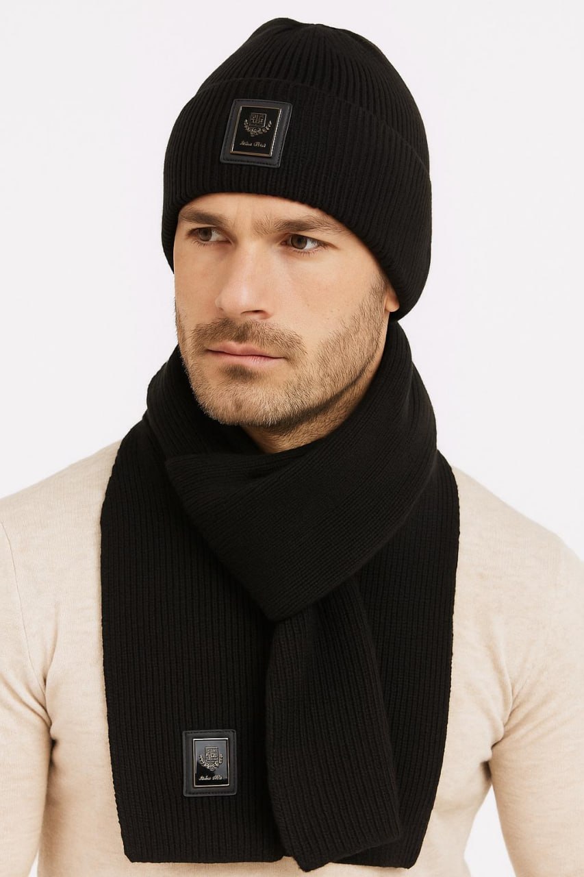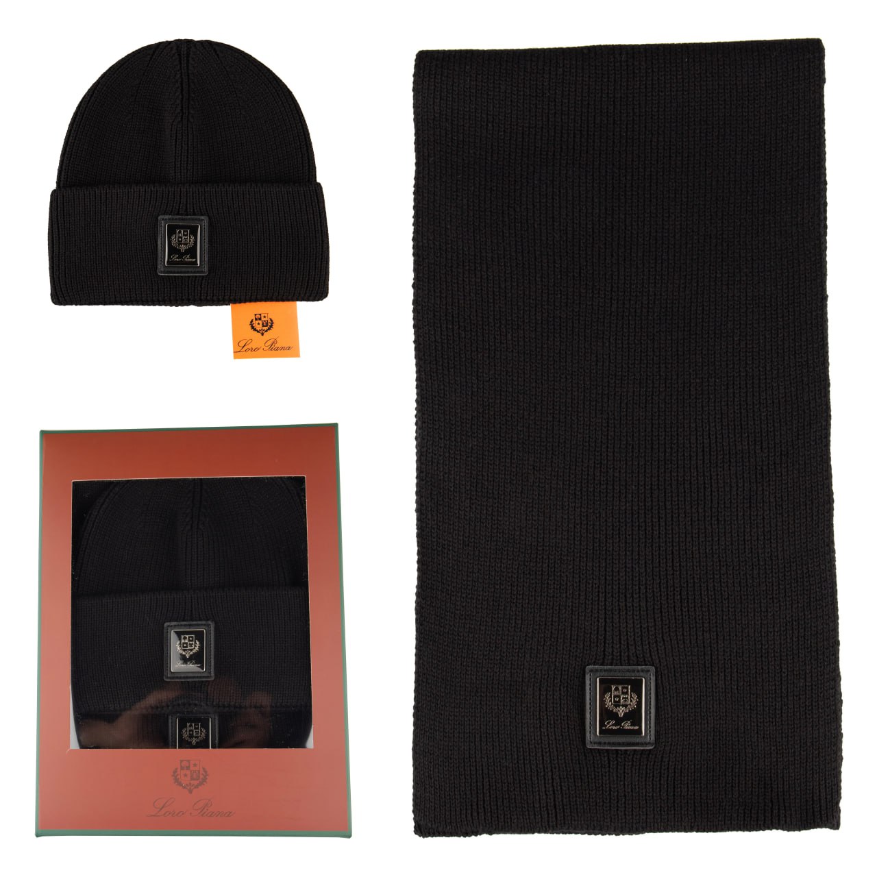 Loro Piana erkek atki bere takimi Logo Detayli Siyah