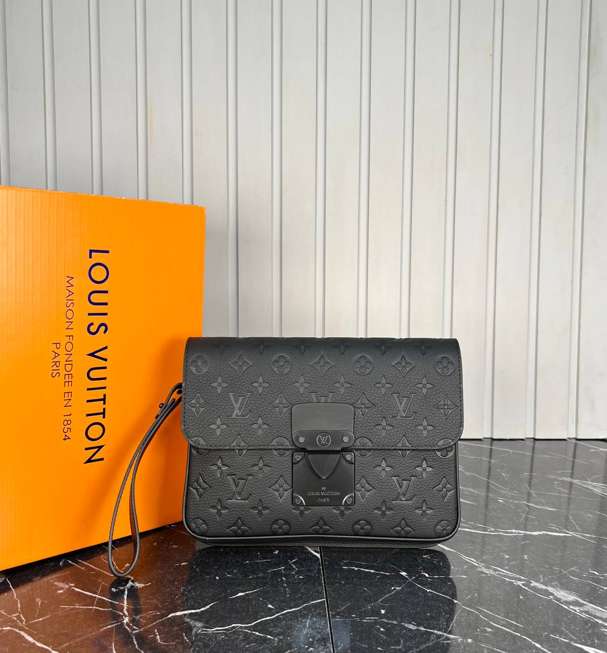 Louis Vuitton Erkek canta S Lock A4 Pouch Portfoy Clutch Monogram Yeni Sezon Siyah