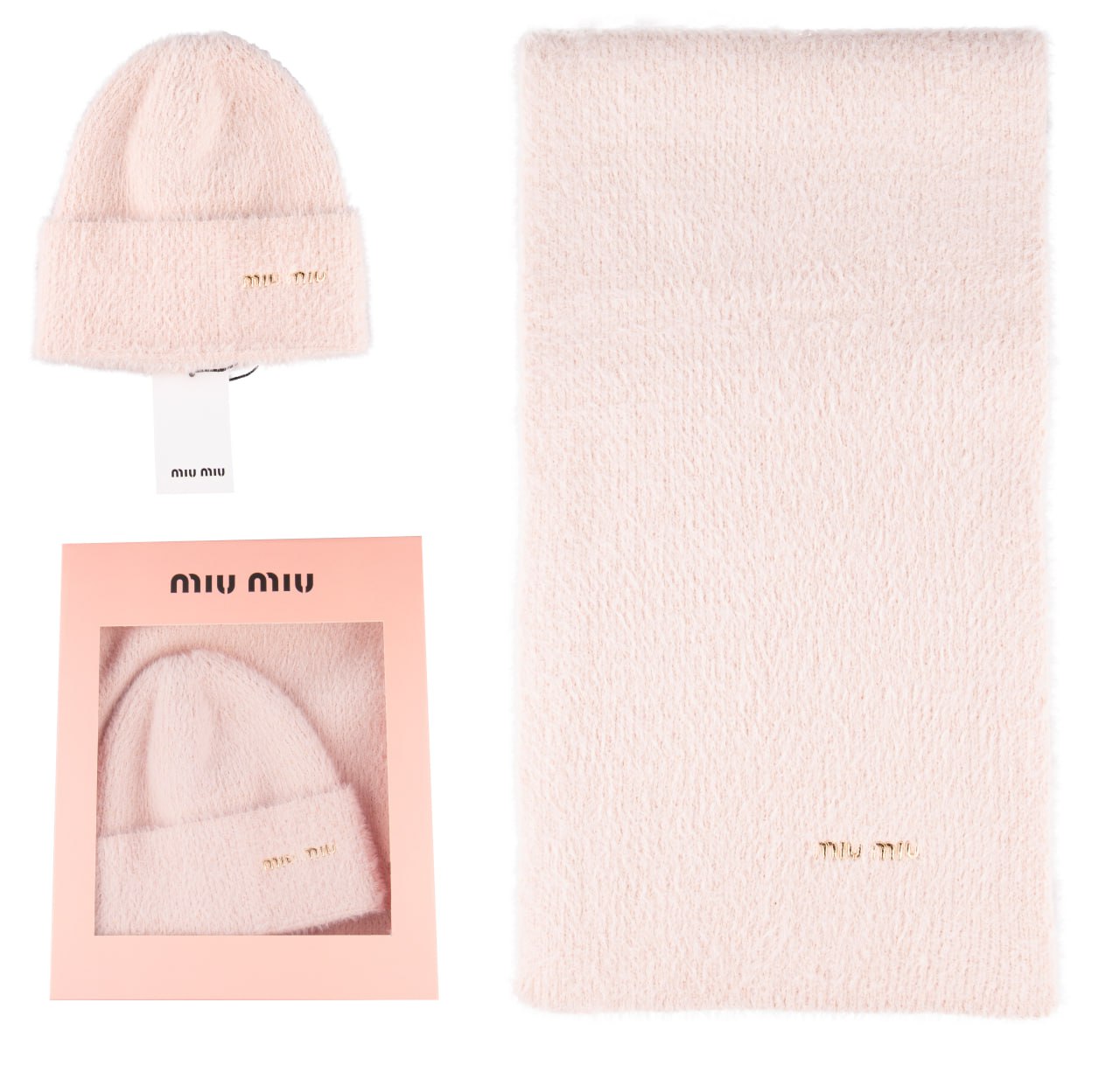 Miu Miu kadin atki bere takimi Gold Logo Detayli Yeni Sezon Pembe adet
