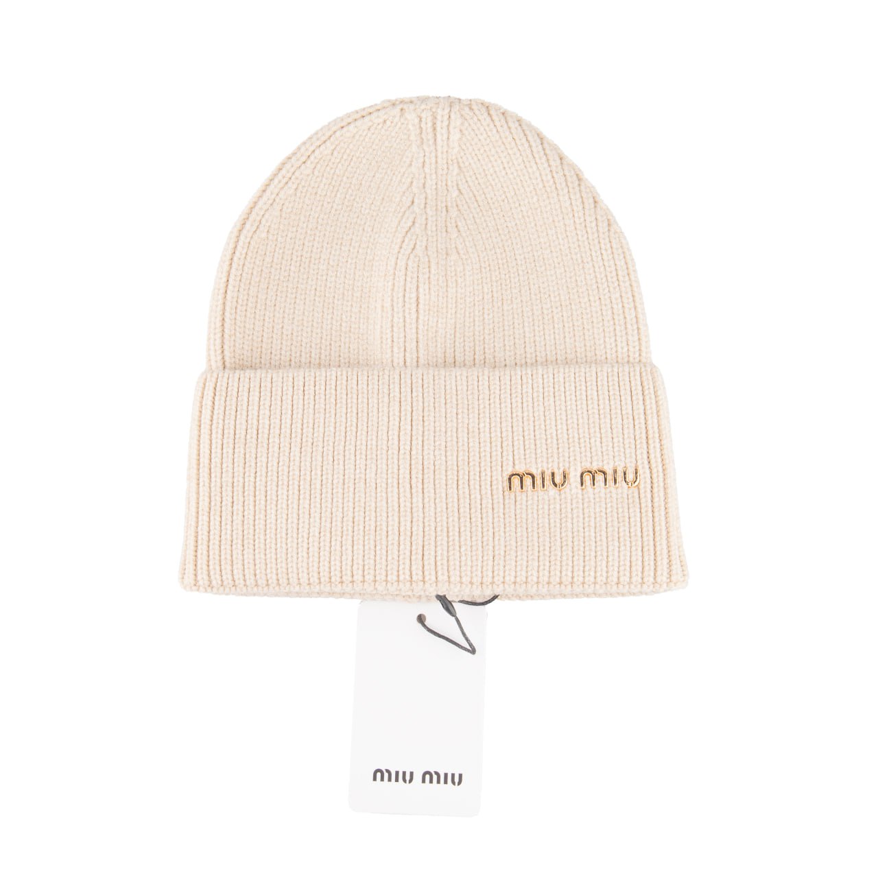 Miu Miu kadin bere Gold Detayli Logo Yeni Sezon Bej