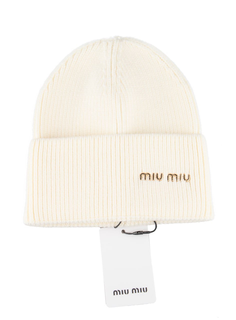 Miu Miu kadin bere Gold Detayli Logo Yeni Sezon Beyaz adet