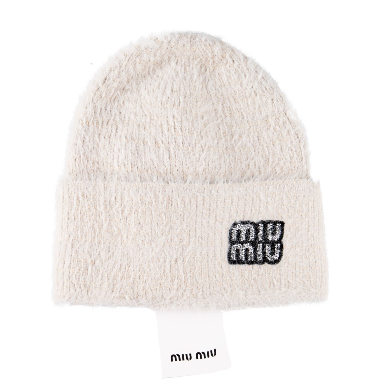 Miu Miu kadin bere Tas Detayli Logo Yeni Sezon Bej