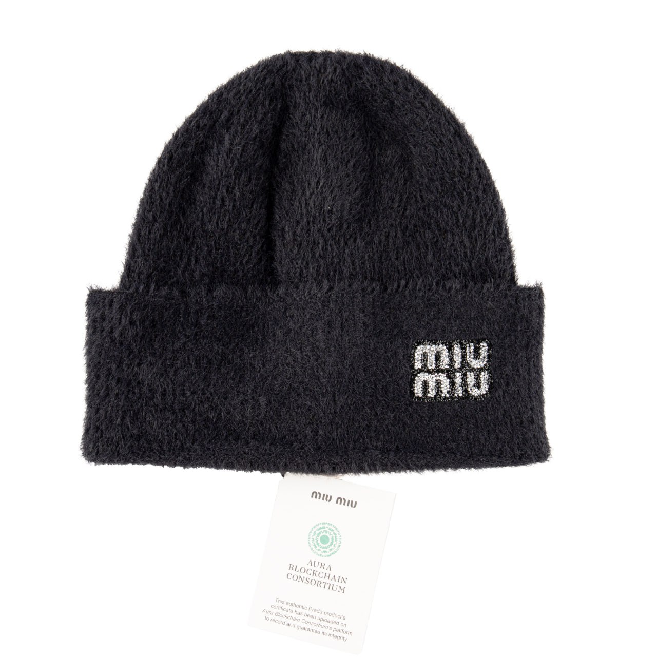 Miu Miu kadin bere Tas Detayli Logo Yeni Sezon Siyah