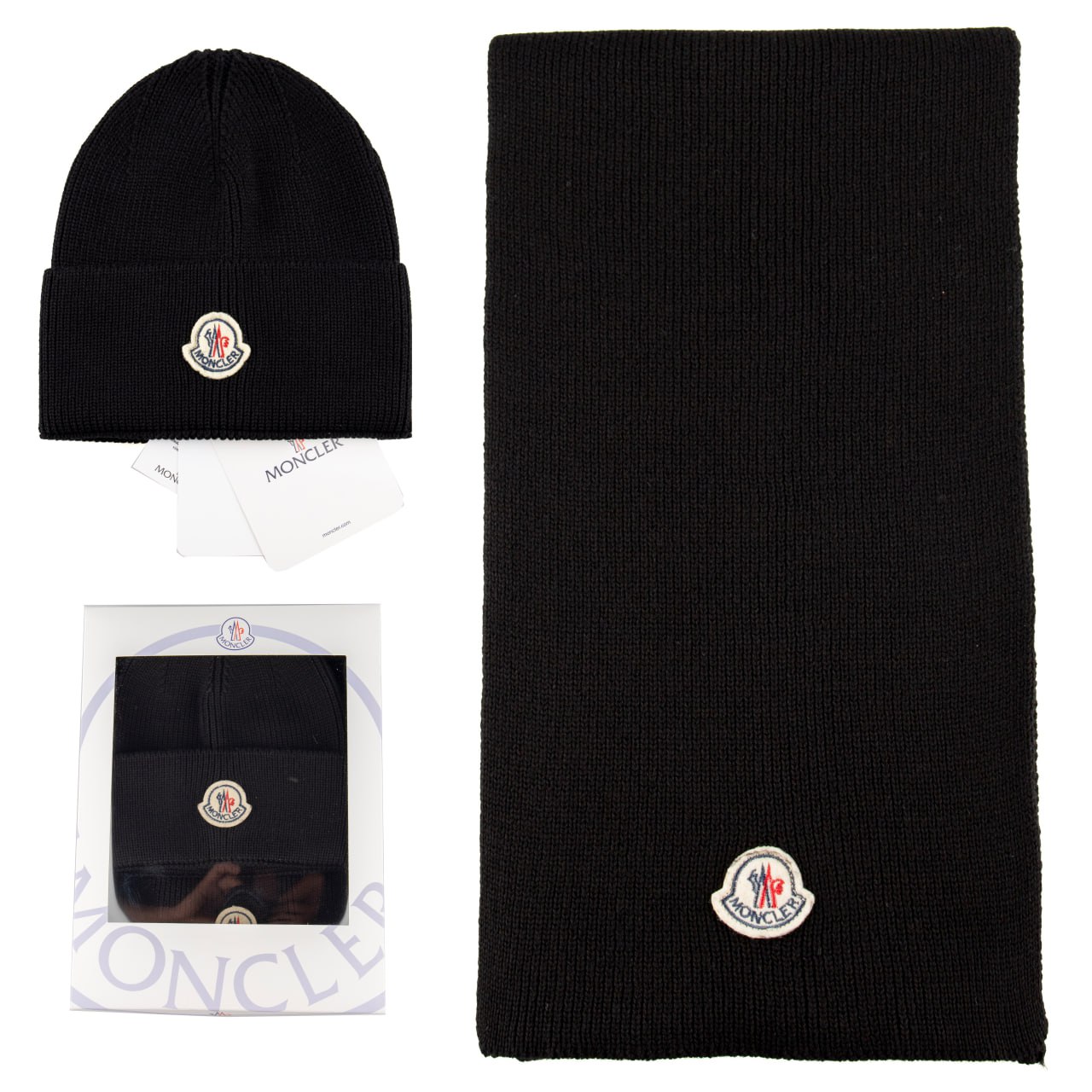 Moncler erkek atki bere takimi Logo Detayli Yeni Sezon Siyah adet