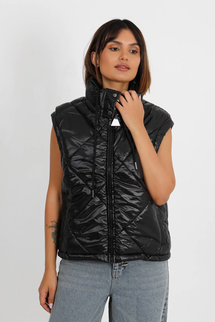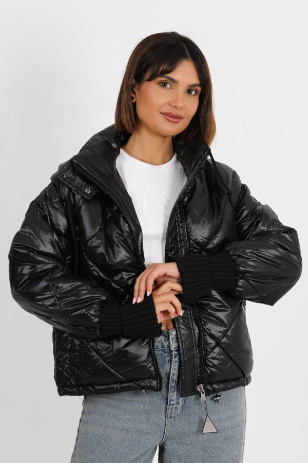 Moncler Kadin mont Kapitone desenli kollari cikarilabilir yeni sezon Siyah Parlak