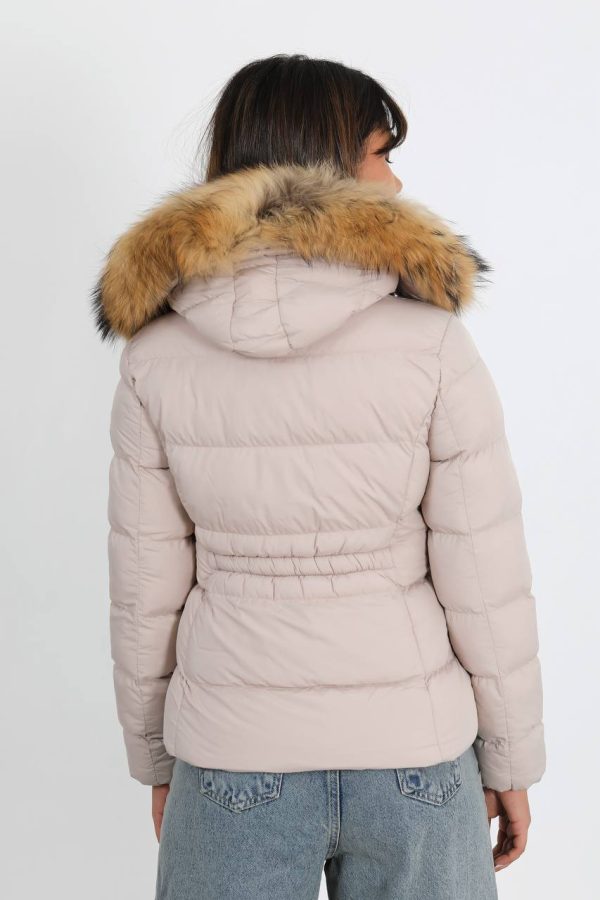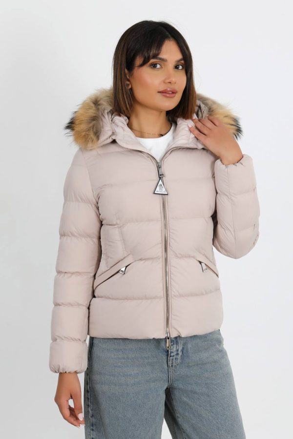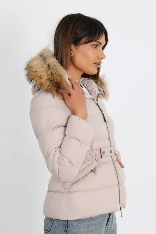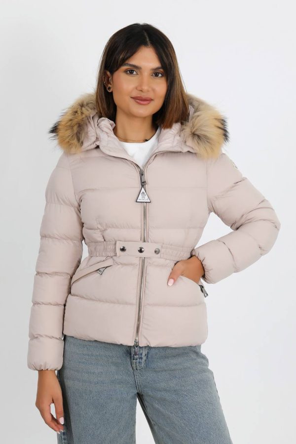 Moncler Kadin mont Kapusonu Tilki Tuyu Beli Kemer Detayli Yeni Sezon Bej