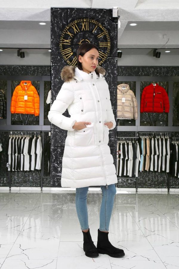 Moncler Kadin mont Kapusonu Tilki Tuyu Uzun Yeni Sezon Beyaz
