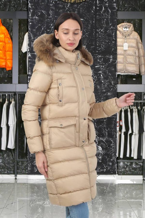Moncler Kadin mont Kapusonu Tilki Tuyu Uzun Yeni Sezon Camel