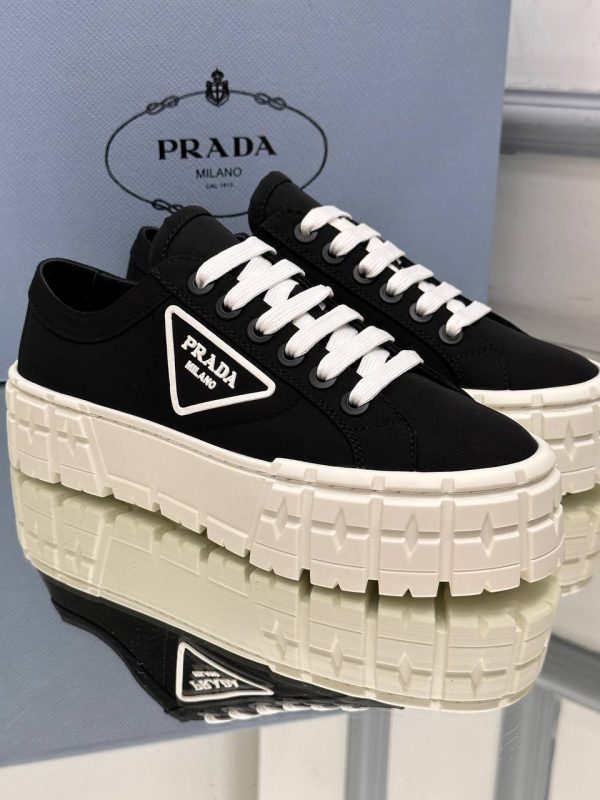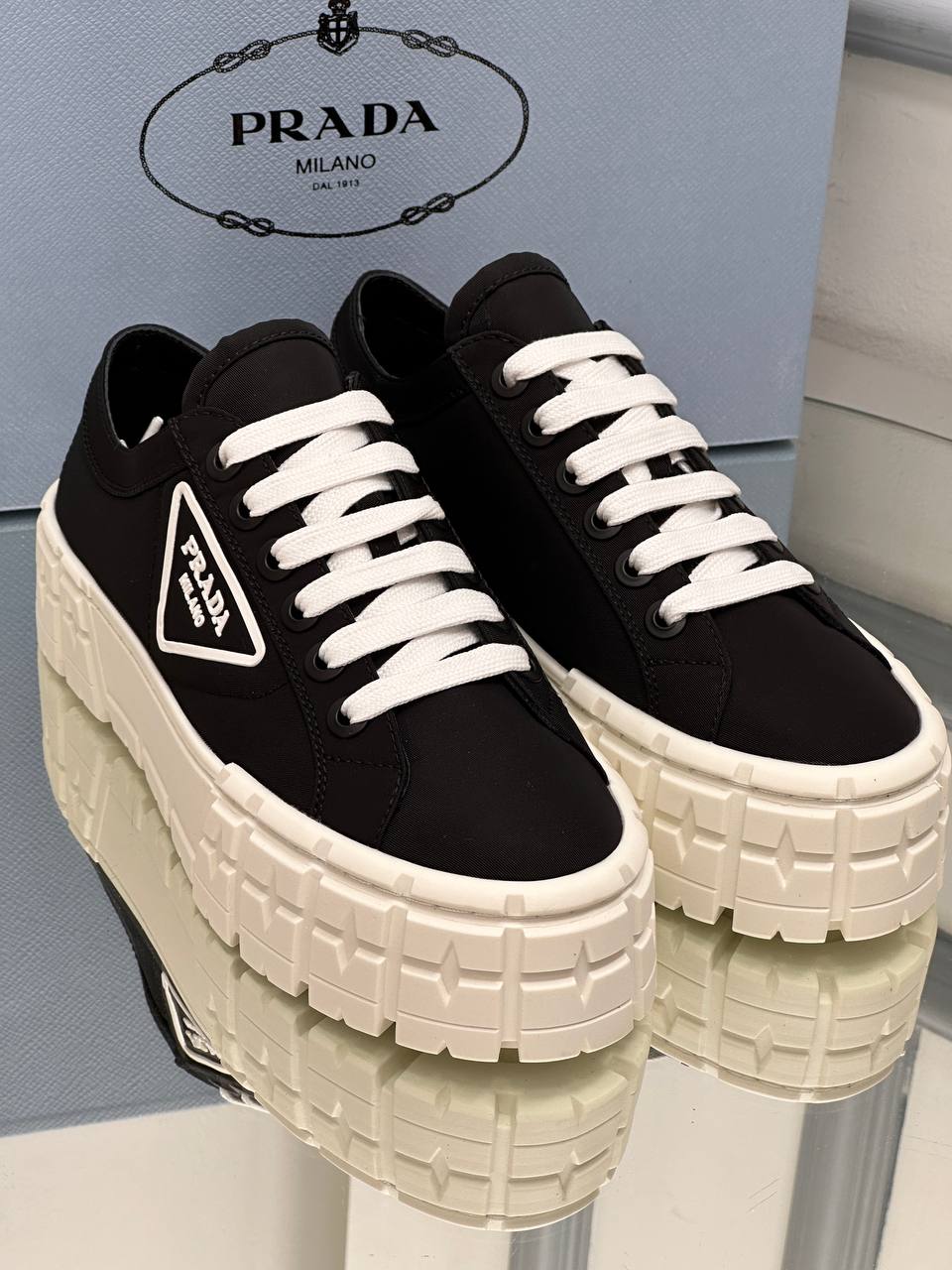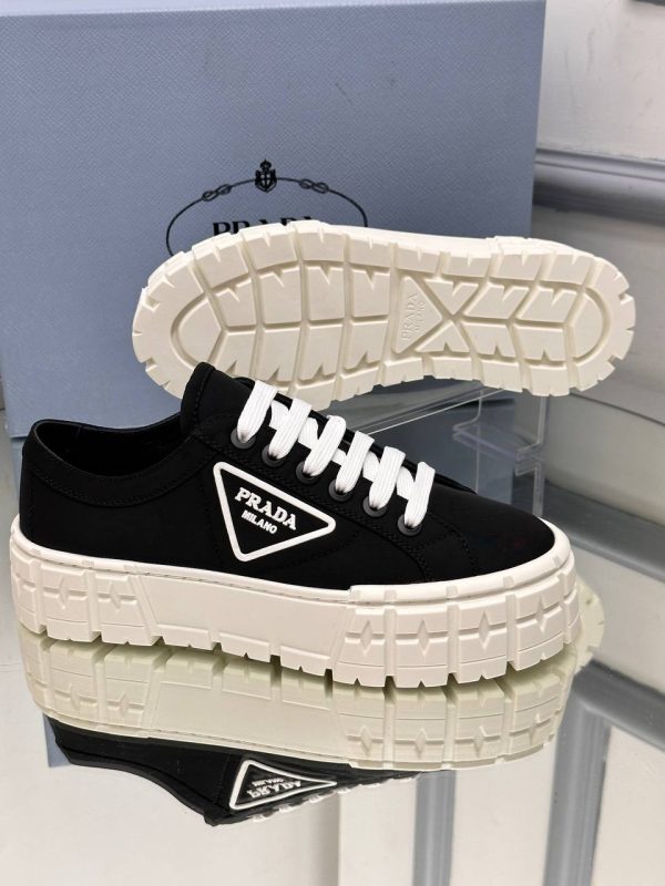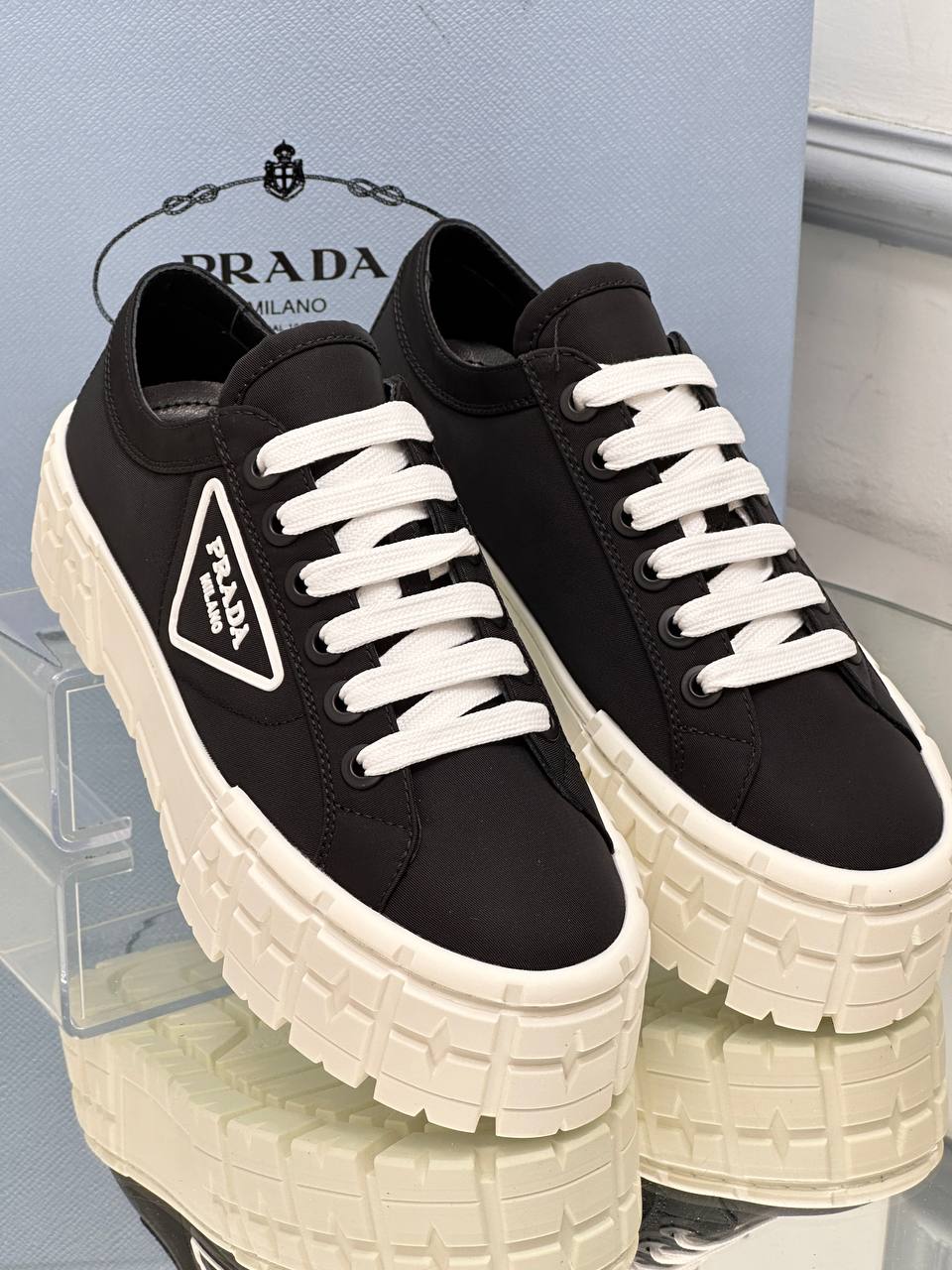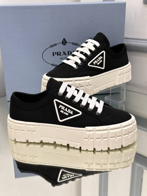 Prada Kadin ayakkabi Sneakers Scuba Nylon Kumas Detayli Beyaz Taban Yeni Sezon Ithal Yuksek Kalite Siyah Beyaz