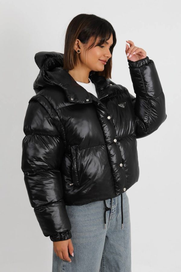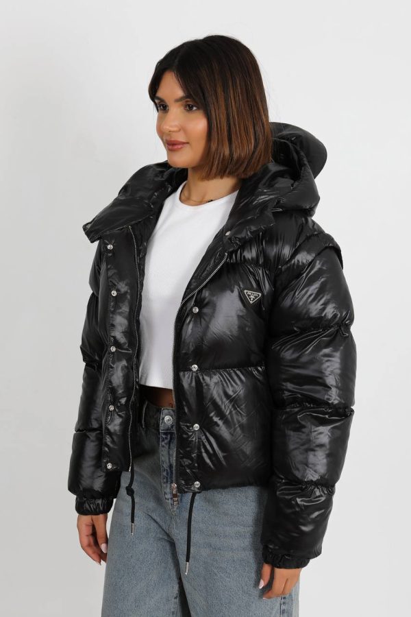 Prada Kadin mont Kollari Cikarilabilir Yelek Kullanimli Yeni Sezon Siyah Parlak