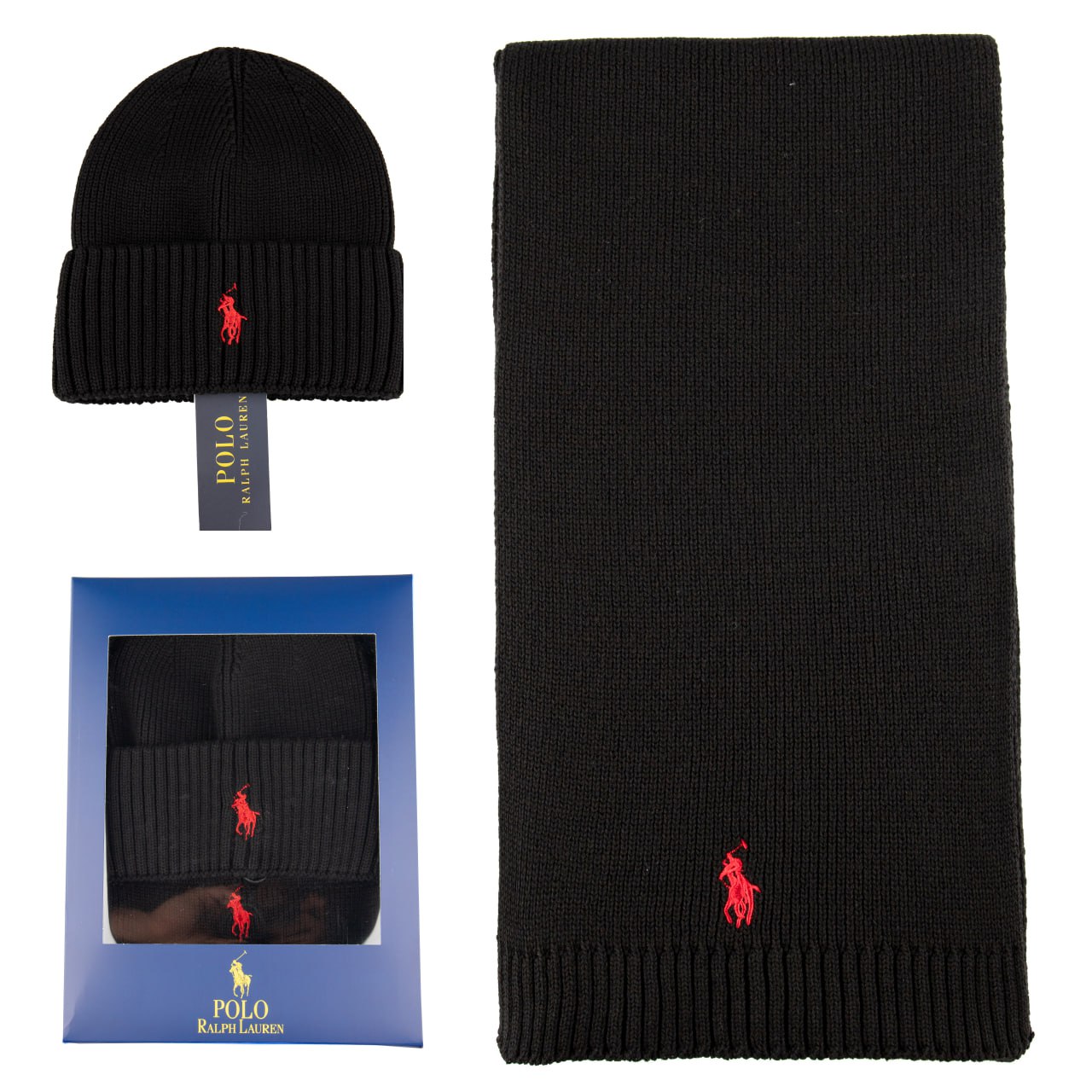Ralph Lauren erkek atki bere takimi Kirmizi Logo Detayli Yeni Sezon Siyah adet