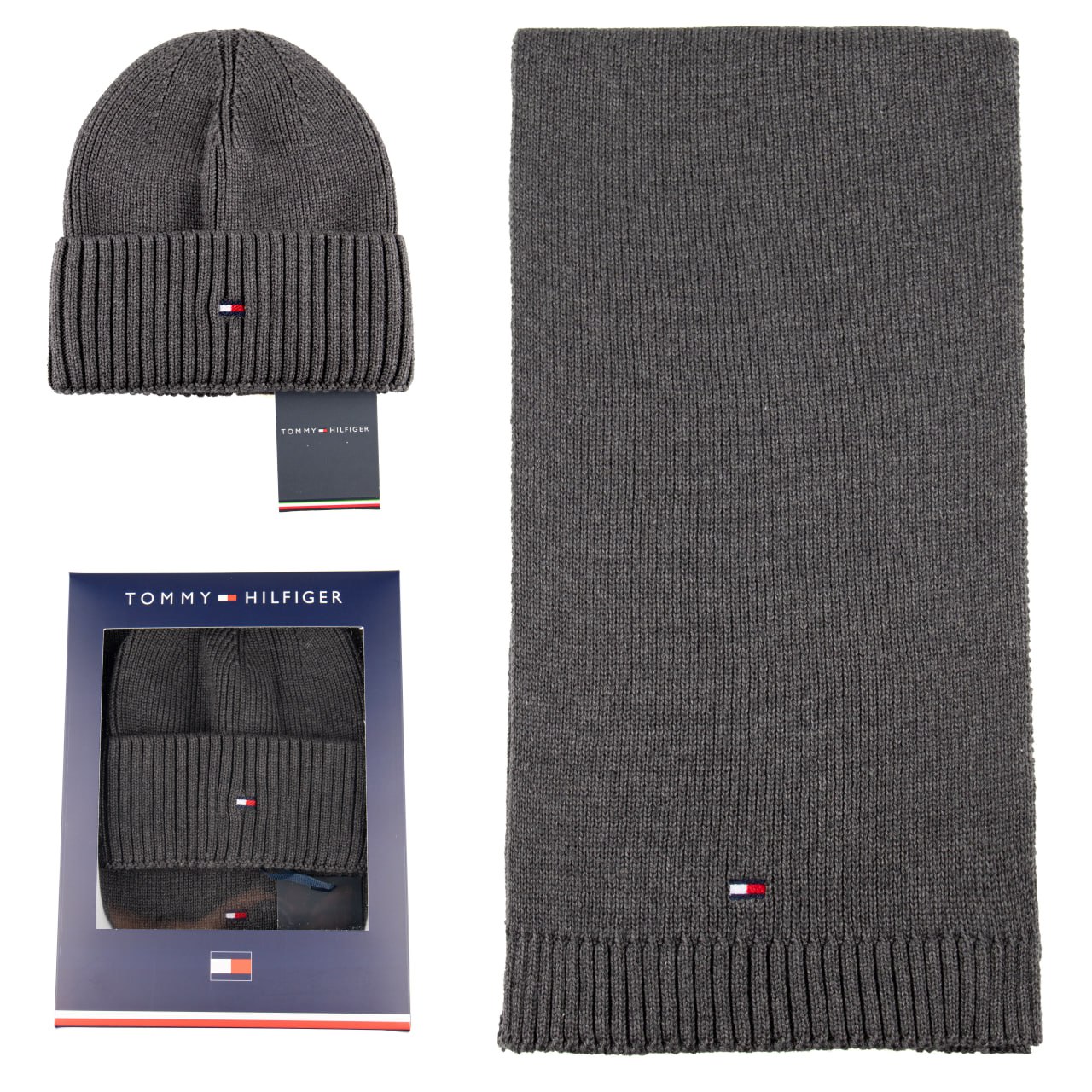 Tommy Hilfiger erkek atki bere takimi Logo Detayli Yeni Sezon Antrasit adet