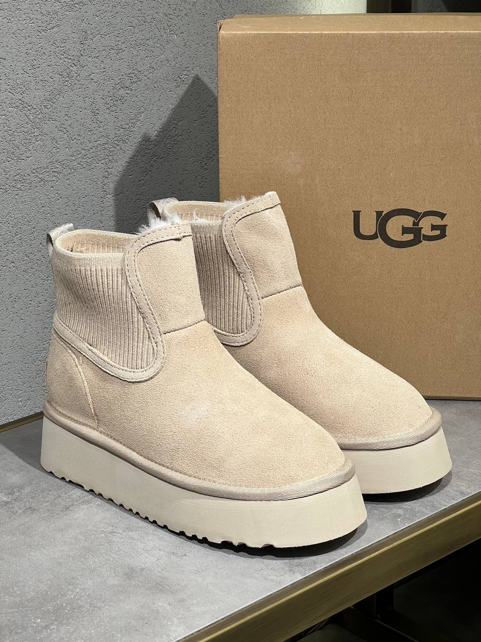 Ugg Kadin bot Classic Platform Taban Bilek Detayli Bej