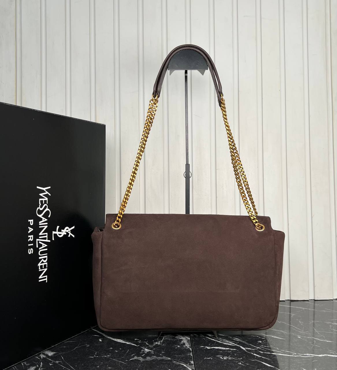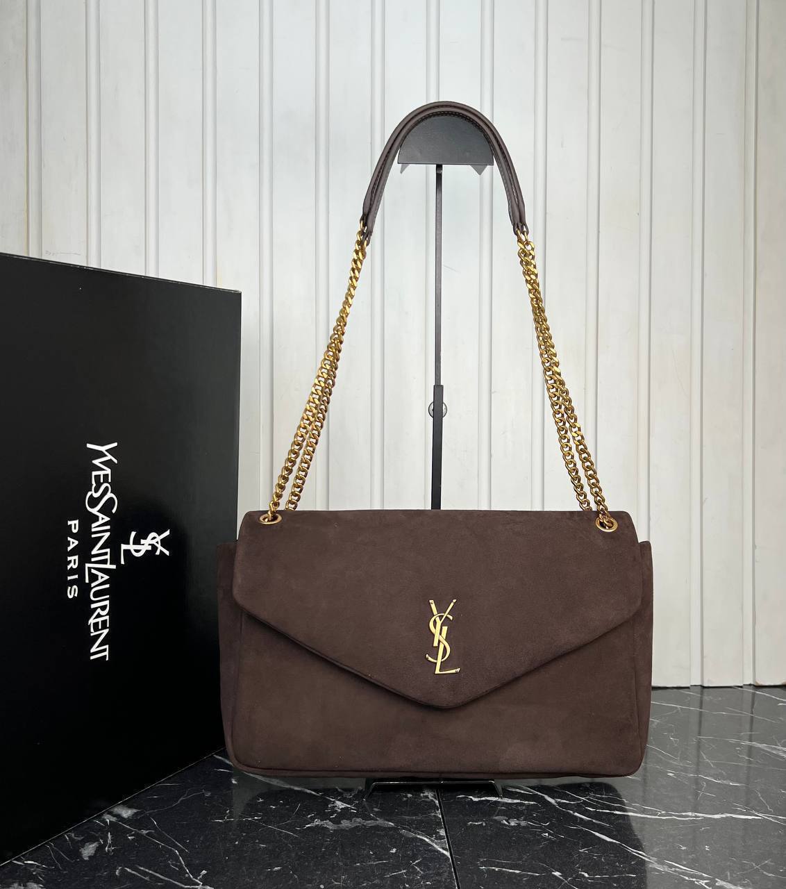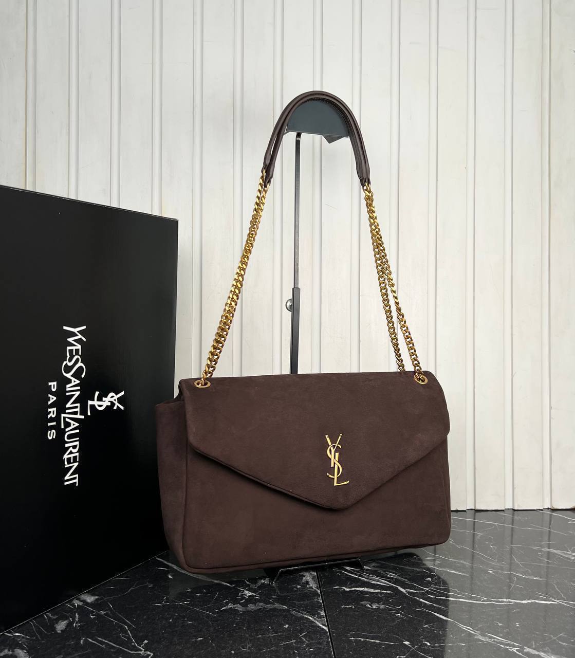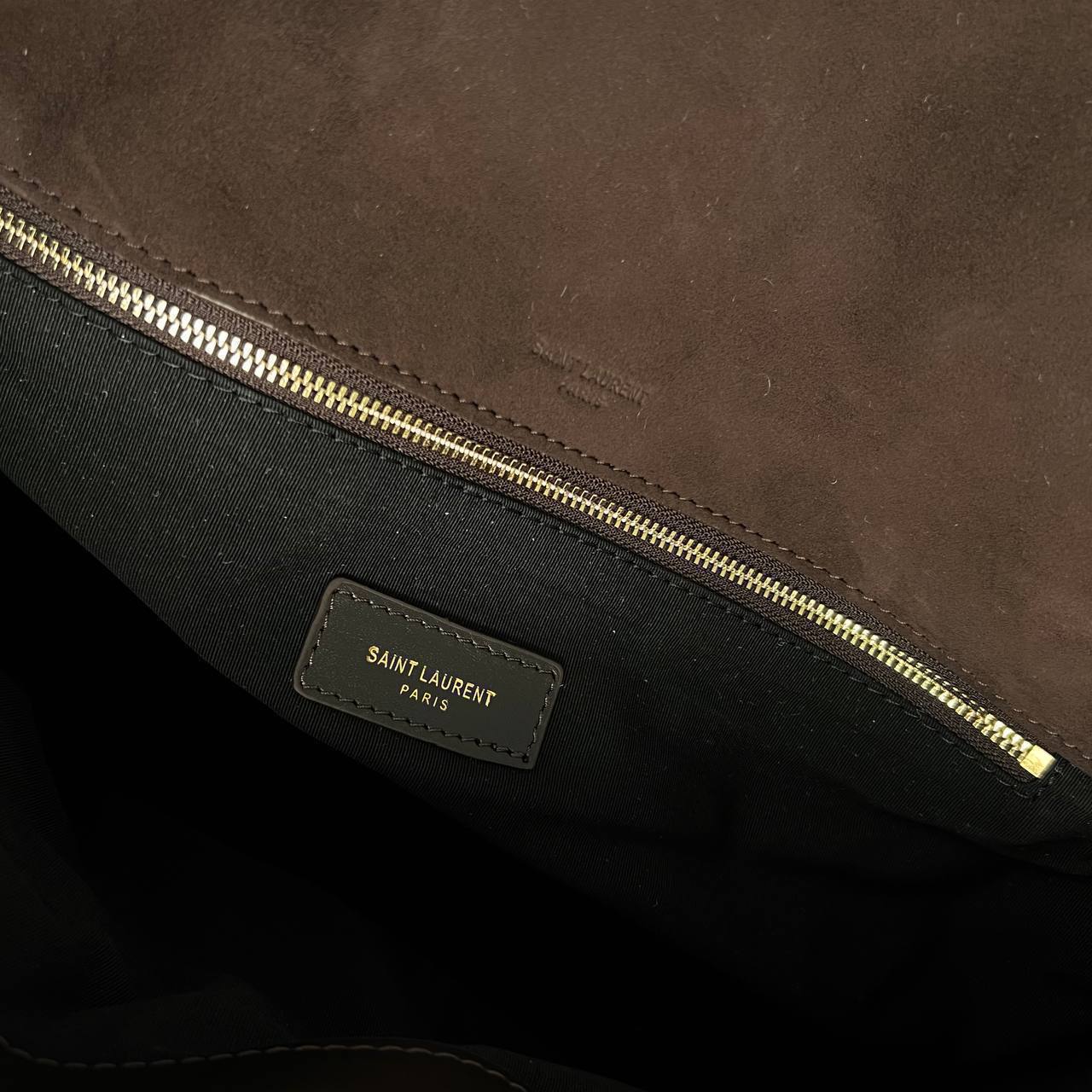 Yves Saint Laurent Kadin canta Calypso Buyuk Boy Suet Yeni Sezon Aci Kahve