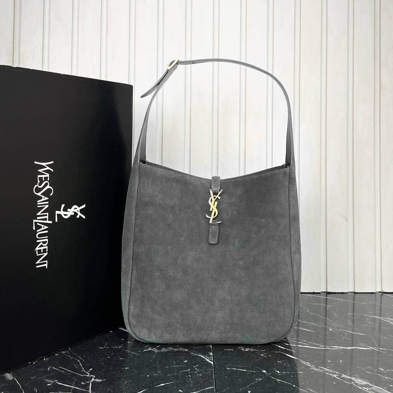 Yves Saint Laurent Kadin canta Le 37 Buyuk Boy Suet Yeni Sezon Gri