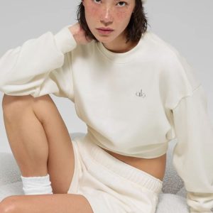 Alo Yoga kadin bere Beyaz Nakisli Logo Detayli Beyaz