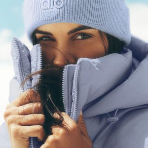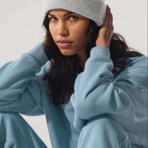 Alo Yoga kadin bere Mavi Nakisli Logo Detayli Mavi