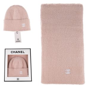 Chanel kadin atki bere takimi Logo Detayli Yeni Sezon Pembe