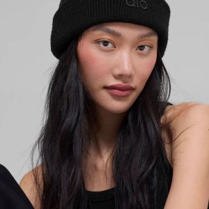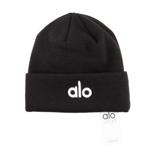 Alo Yoga kadin bere Siyah Nakisli Logo Detayli Siyah