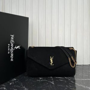 Yves Saint Laurent Kadin canta Calypso Buyuk Boy Suet Yeni Sezon Siyah