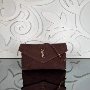 Yves Saint Laurent Kadin canta Cassandre Pouch Orta Boy Suet Yeni Sezon Aci Kahve