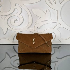 Yves Saint Laurent Kadin canta Cassandre Pouch Orta Boy Suet Yeni Sezon Taba