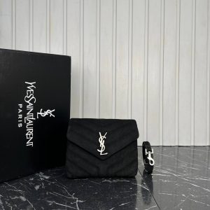 Yves Saint Laurent Ysl Kadin canta LouLou Suet Kucuk Boy Siyah Aksesuarli Yeni Sezon Siyah