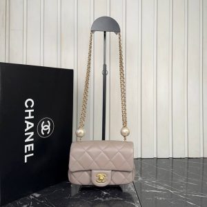 Chanel Kadin canta Flap Inci Aksesuarli Kucuk Boy Yeni Sezon Vizon