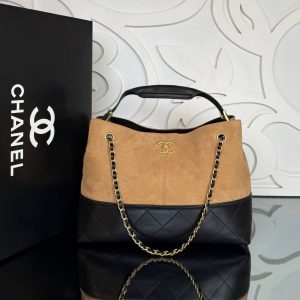 Chanel Kadin canta Medium Shopping Suet Detayli Yeni Sezon Taba Siyah
