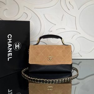 Chanel Kadin canta Buyuk Boy Top Handle Suet Detayli Yeni Sezon Taba Siyah