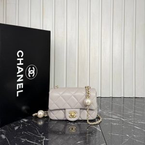 Chanel Kadin canta Flap Inci Aksesuarli Kucuk Boy Yeni Sezon Gri