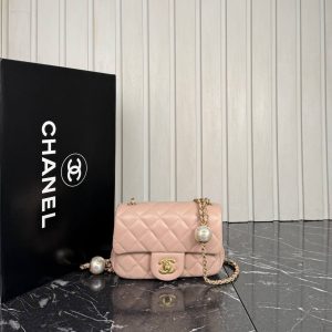 Chanel Kadin canta Flap Inci Aksesuarli Kucuk Boy Yeni Sezon Acik Pudra