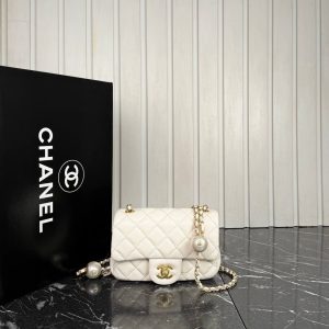 Chanel Kadin canta Flap Inci Aksesuarli Kucuk Boy Yeni Sezon Beyaz