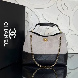 Chanel Kadin canta Medium Shopping Suet Detayli Yeni Sezon Gri Siyah