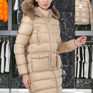 Moncler Kadin mont Kapusonu Tilki Tuyu Beli Kemer Detayli Yeni Sezon Bej