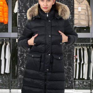 Moncler Kadin mont Kapusonu Tilki Tuyu Uzun Yeni Sezon Siyah