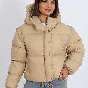 Prada Kadin mont Kollari Cikarilabilir Yelek Kullanimli Yeni Sezon Bej