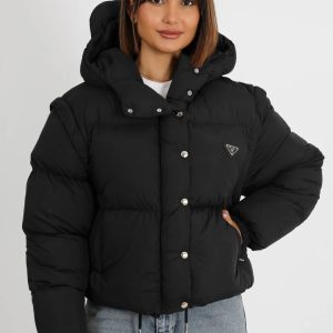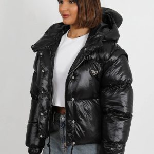 Prada Kadin mont Kollari Cikarilabilir Yelek Kullanimli Yeni Sezon Siyah Parlak
